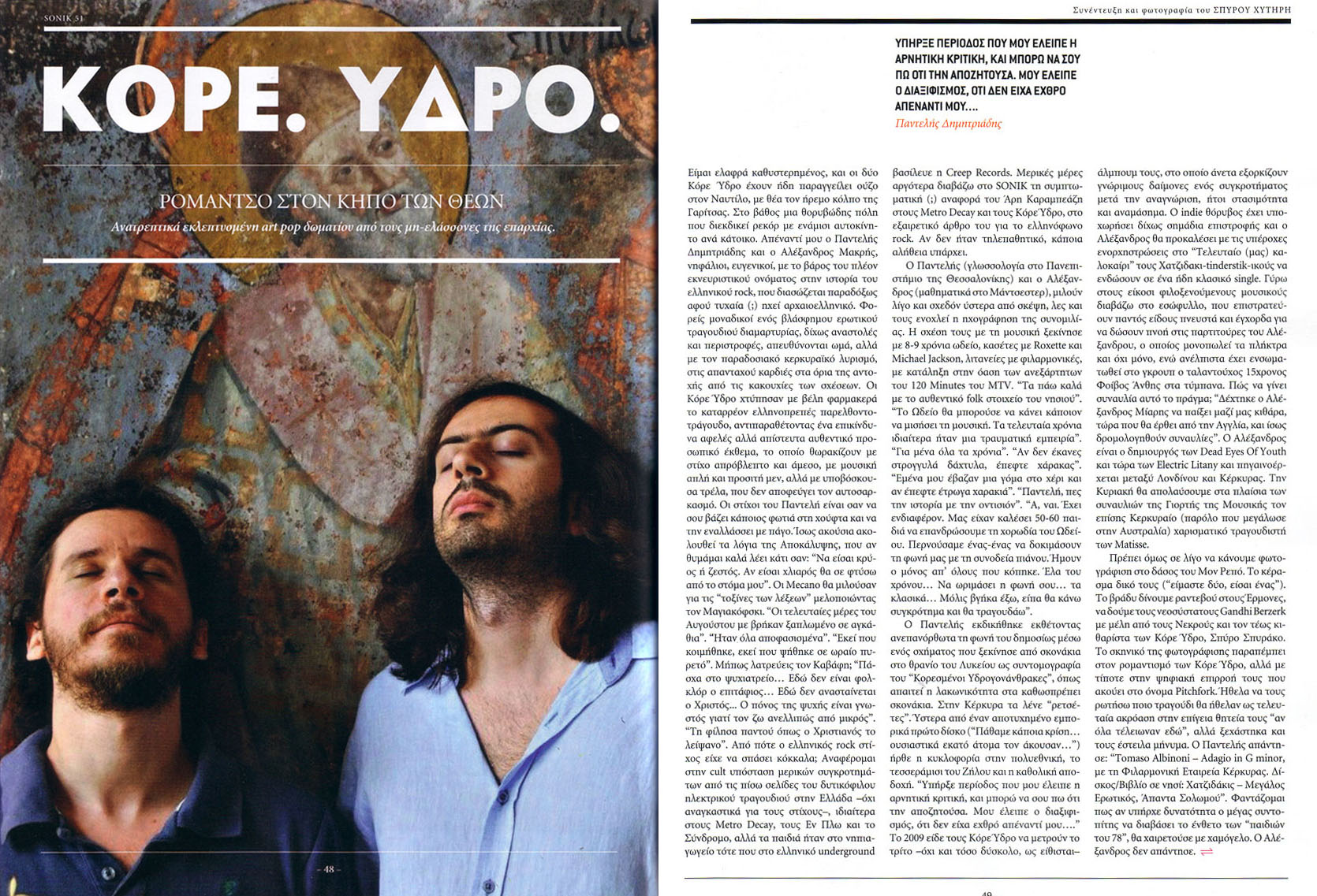 Κάπου εκεί - επιτρέψτε μου τις κινηματογραφικές αναφορές - νομίζω ότι είδα τον γίγαντα του "Twin Peaks" να μου λέει "you-are-here" και όταν γύρισα νόμισα ότι ήμουν στη συναυλία των Sex Pistols στο "24-hour party people" και γενικά για να μην φανεί ούτε ότι παραμελώ τις επισκέψεις στον ψυχολόγο μου, ούτε ότι δουλεύω το αφεντικό και το αγαπητό αναγνωστικό μου κοινό, δεν μπορούσα να προσγειωθώ στην πασίγνωστη κατάσταση αποκαλούμενη και 'πραγματικότητα'. Όταν μετά τα εξόχως περιττά φανιλίκια των εμπρός παριστάμενων οι Κόρε.'Υδρο. αποχώρησαν για τα καλά, ευχήθηκα να με δικαιώσει το μέλλον για το ότι πίστευα ότι βρέθηκα σε μια ιστορική συναυλία.»