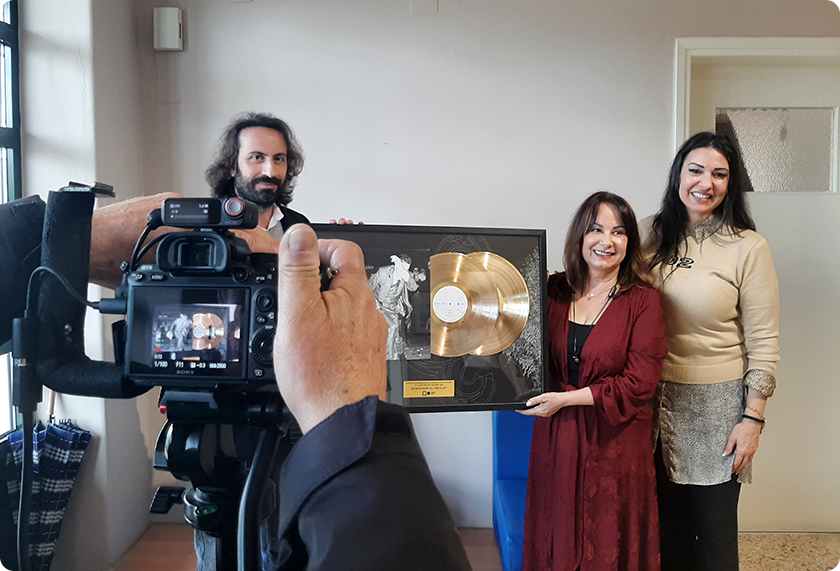 Ο χρυσός δίσκος του Π.Ε. Δημητριάδη για τη Φτηνή Ποπ για την Ελίτ στο ιστορικό κτίριο της ΕΡΤ Κέρκυρας